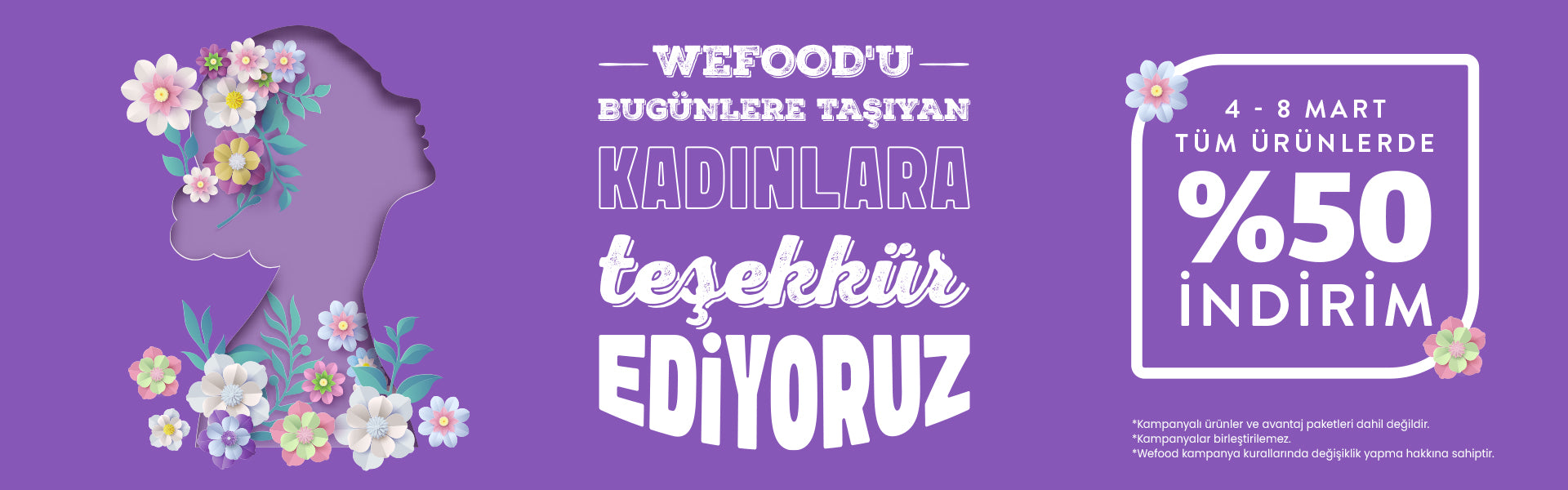*Wefood, düzenlediği kampanyalarla ilgili olarak kampanya şartlarını önceden bildirimde bulunmaksızın değiştirme, kampanyayı durdurma veya tamamen sonlandırma hakkını saklı tutar.