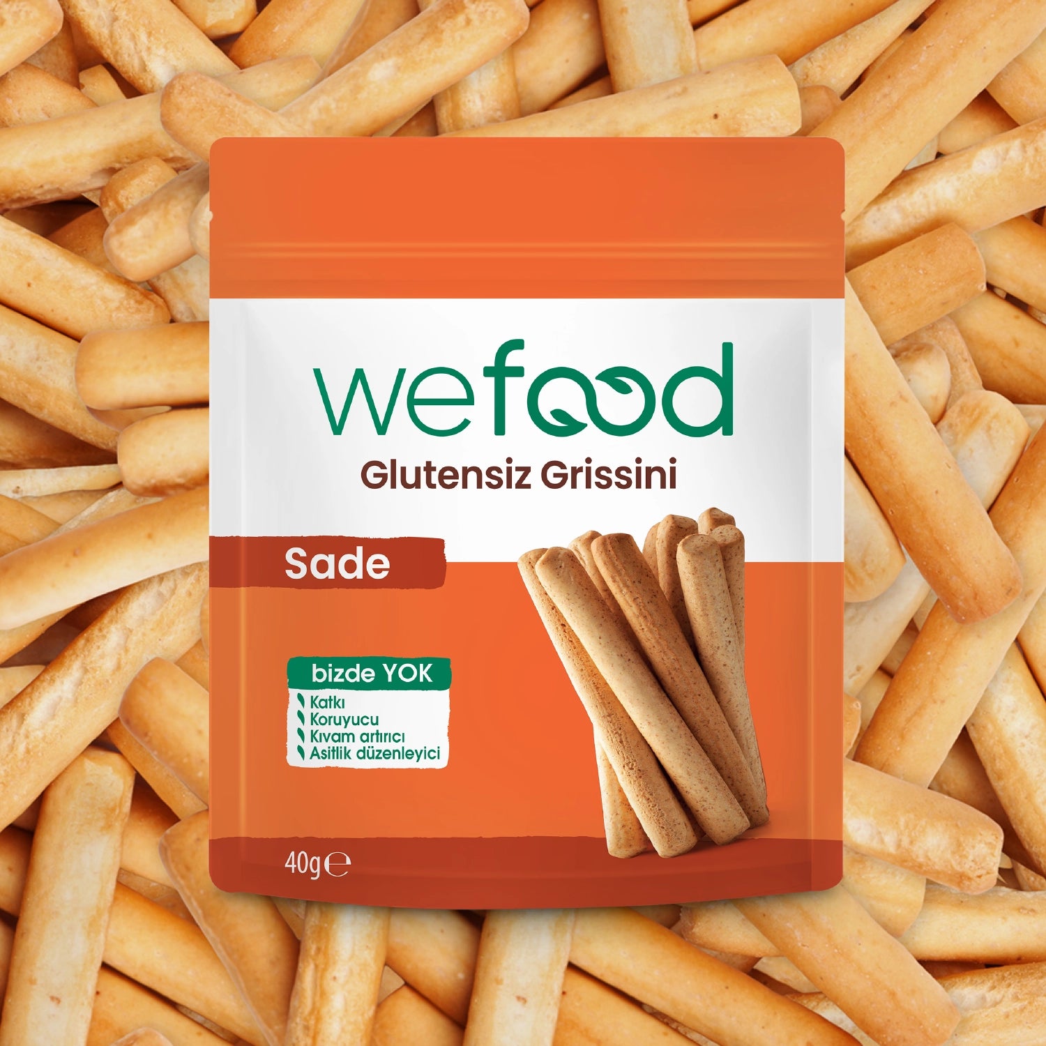 - Grissini gevrekliği ve lezzetini katkısız,koruyucusuz, temiz içerikle buluşturan Wefood Glutensiz Grissini Sade, çapraz bulaşma riskini ortadan kaldırmak adına baştan sona glutensiz mamullere özel hatlarda el değmeden üretiliyor. Üründe kullanılan hurma suyu, hindistan cevizi yağı ve un çeşitlerine kadar tüm malzemeler, doğal coğrafyalarında yetişmiş birinci kalite malzemelerden seçiliyor. Wefood Glutensiz Grissini Sade atıştırmalığının üretiminde katkı, koruyucu, kıvam artırıcı ve asitlik düzenleyici kullanılmıyor. Wefood glutensiz sade grissini, tüketimi daha keyifli kılmak, aynı zamanda çantaya atıp gün boyu yanınızda bulundurmayı kolaylaştırmak için büyük boyutlarda değil mini olarak üretiliyor. Wefood Glutensiz Grissini Sade, üretimin ilk aşamasında olduğu gibi son aşamasında da hijyenik ortamda el değmeden kilitli doypack ambalajına dolduruluyor.